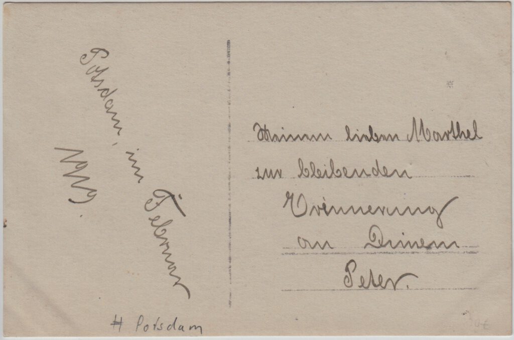 Alte Postkarte (1919) – Duo mit Mandoline und Gitarre Beitrag veröffentlicht:27. August 2025 Beitrags-Kategorie:Alte Postkarten Diese Alte Postkarte zeigt ein Duo mit Mandoline und Gitarre. Beide Instrumente haben viele Bänder am Kopf befestigt.Auf der Rückseite ist die Postkarte beschriftet mit: „Deinem lieben Marthel zur bleibenden Erinnerung von deinem Peter. Potsdam im Februar 1919 Schlagwörter: Postkarten Weitere Artikel ansehen Vorheriger BeitragMandolinen Solo Quartett Döbeln Das könnte dir auch gefallen Vier Frauen mit Mandoline und Gitarre 23. April 2024 Mandolinengruppe im Freien mit Geige 21. Juli 2025 Alte Postkarten – Quartett mit Kontragitarre 15. März 2023