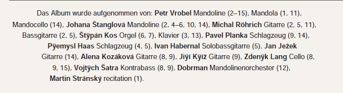 Die CD beginnt mit der Rezitation eines Gedichtes von Emily Dickinson über die Mandoline, eingeleitet und begleitet von Petr Vrobel an der Mandola.