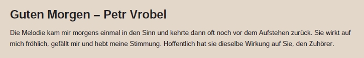 Petr Vrobel ist ein Mandolinenspieler aus Tschechien. Ich habe ihn einmal bei der „European Mandolin Academy“ in Trossingen getroffen, und verfolge seitdem, welche Projekte er mit der Mandoline angeht.