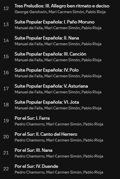 Am Ende des Albums kann man die bisher weniger bekannte Komposition „Por el Sur“ von Pedro Chamorro hören.