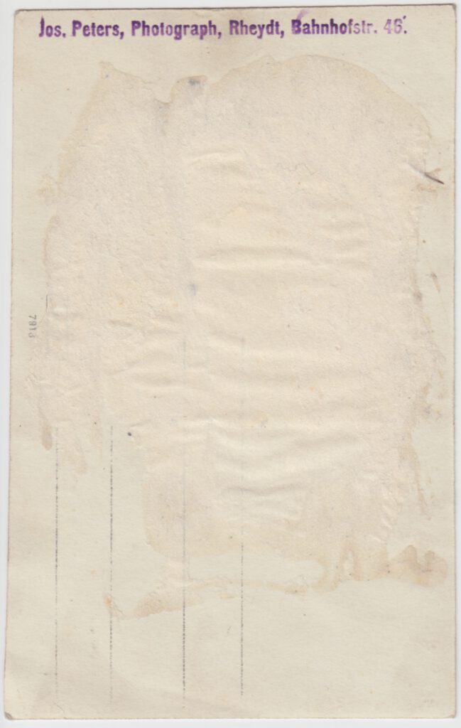 Auf der Rückseite findet man den Stempel „Jos. Peters, Photograph, Rheydt, Bahnhofstr. 46.